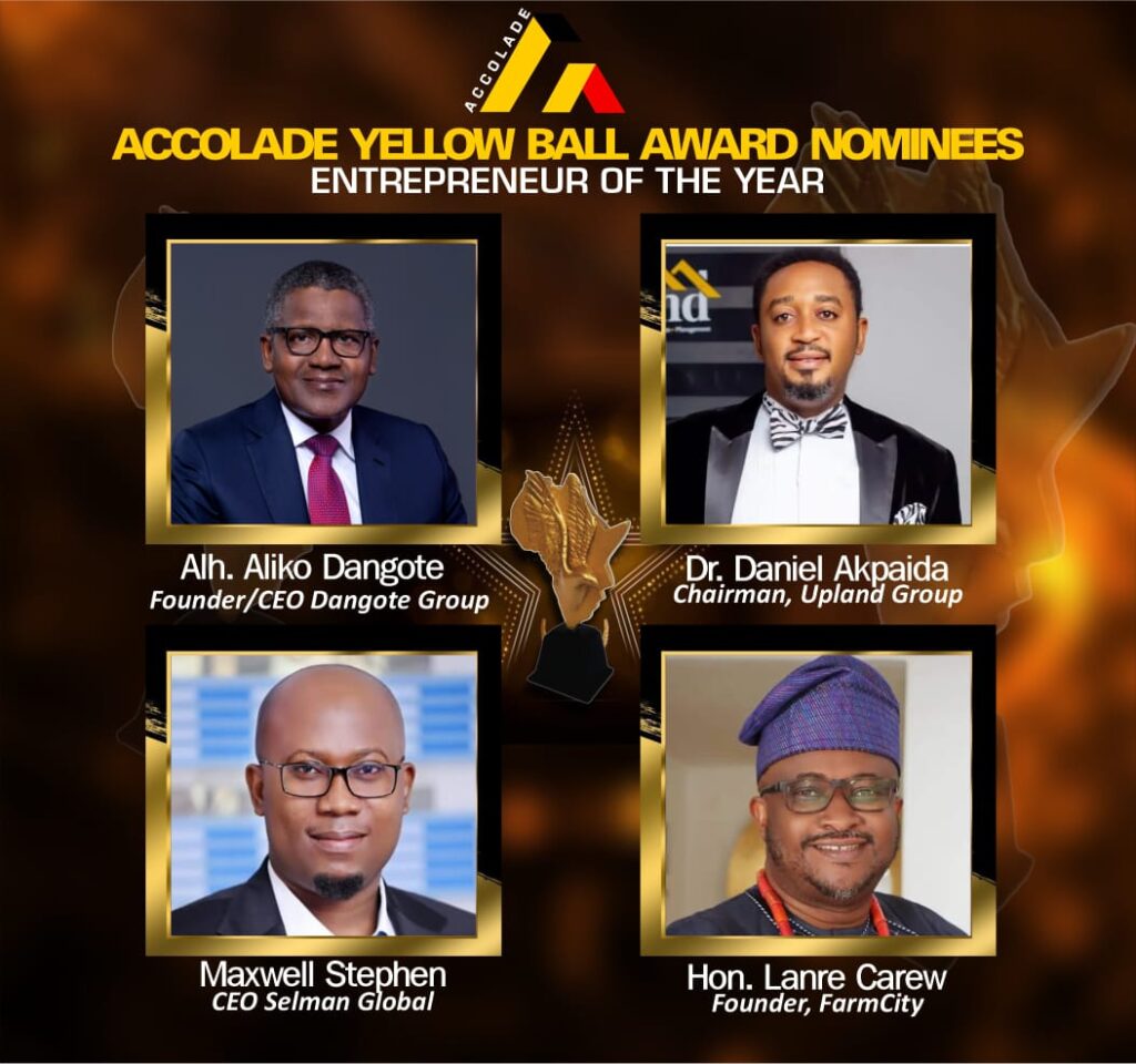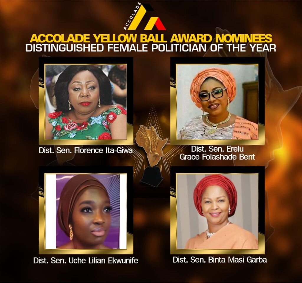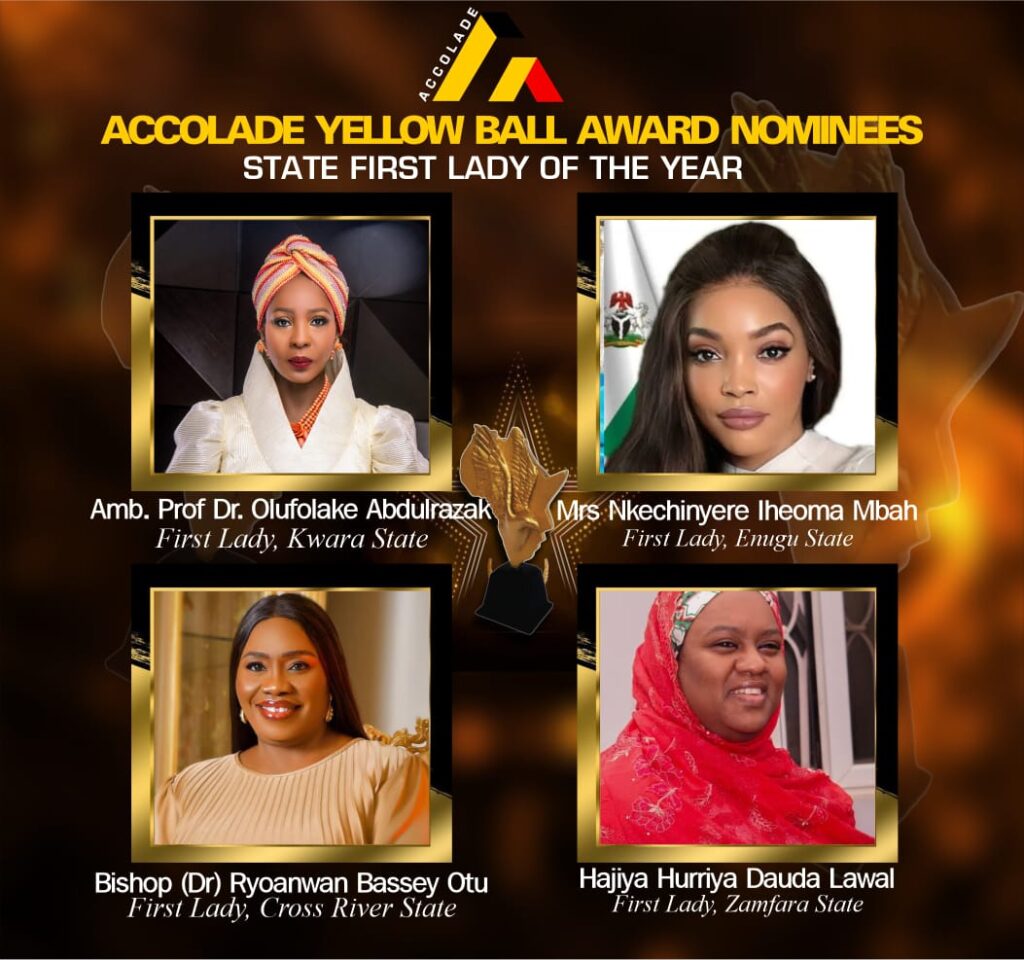 LIFETIME ACHIEVMENT AWARD - FORMER FIRST LADY OF NIGERIA MINISTER OF THE YEAR MINISTER OF STATE OF THE YEAR OUTSTANDING LEADER IN PUBLIC SERVICE DISTINGUISHED ADMINISTRATIVE LEADER OF THE YEAR BEST PERFORMING GOVERNOR OF THE YEAR - ECONOMIC DEVELOPMENT BEST PERFORMING GOVERNOR OF THE YEAR - INFRASTRUCTURAL DEVELOPMENT BEST PERFORMING GOVERNOR OF THE YEAR - NATIONAL INTEGRATION, PEACE AND SECURITY STATE FIRST LADY OF THE YEAR INFLUENTIAL FORMER STATE FIRST LADY OF THE YEAR REAL ESTATE COMPANY OF THE YEAR ROYAL FATHER OF THE YEAR DISTINGUISHED FEMALE POLITICIAN OF THE YEAR CEO OF THE YEAR BANK EXECUTIVE OF THE YEAR BANK OF THE YEAR 2026 - DIASPORA FINANCIAL ENGAGEMENT FINTECH COMPANY OF THE YEAR ENTREPRENEUR OF THE YEAR WOMAN ENTREPRENEUR OF THE YEAR YOUNG ENTREPRENEUR OF THE YEAR PHILANTHROPIST OF THE YEAR OUTSTANDING HUMANITARIAN BRAND OF THE YEAR OUTSTANDING TRANSFORMATIONAL LEADER OF YEAR WOMAN OF EXCELLENCE OF THE YEAR OUTSTANDING COMPERE OF THE YEAR WOMAN OF EXCELLENCE OF THE YEAR SOCIAL MEDIA INFLUENCER OF THE YEAR ICON OF NIGERIAN ENTERTAINMENT OF THE YEAR OUTSTANDING COMEDIAN OF THE YEAR DIASPORA ACHIEVER OF THE YEAR YOUTH EMPOWERMENT ICON OF THE YEAR RISING WORKING MUM OF THE YEAR EMERGING SOCIAL IMPACT BRAND OF THE YEAR MOST IMPACTFUL SOCIAL CLUB OF THE YEAR MOST INFLUENTIAL SOCIAL CULTURAL ORGANISATION OF THE YEAR BEST CREATIVE WOMEN FORUM OF THE YEAR